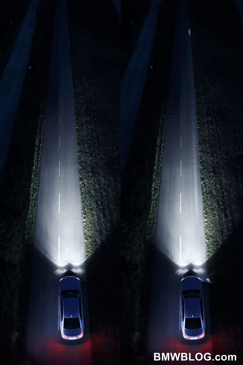 BMW attaches a great deal of importance to the homogeneity of the lighting modes low beam and daytime running beam. The goal of the development was optimally balanced light distribution, meeting the requirements for directing the attention of the driver, in conjunction with an aesthetic, typical BMW headlight design. The dual round icon has LED light rings as parking lights and the daytime driving light. These light rings are flattened at the bottom, dominated by an LED accentuating light at the top and for the first time have been designed in the form of a three-dimensional body. This component accentuates the typical appearance of the brand both in the daytime mode as well as the night design. For the first time, a BMW at night is now recognisable by its 4-eye front, both on low beam and high beam, the same look familiar from the daytime driving mode. This means that the low beam light is generated in the upper half and the high beam in the lower half of all of the four light rings.